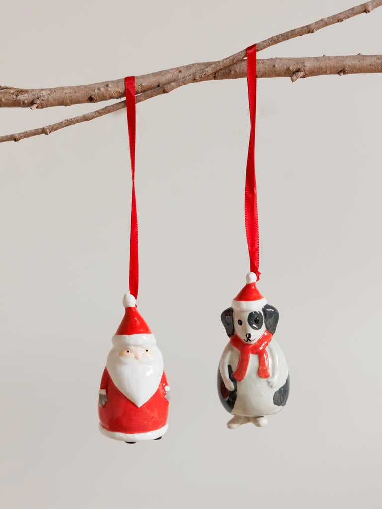 Christmas Ornament - Santa Claus & Dog - Set of 2