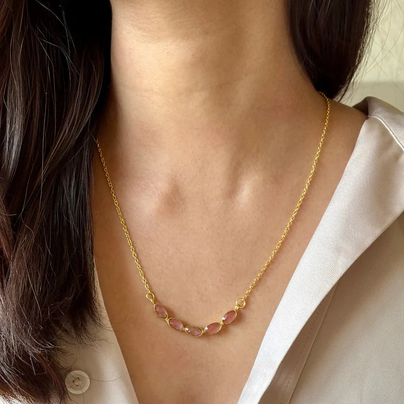 A necklace in a radial pattern, representing the sun's rays and sacred fire. This piece honors Agni, the Vedic fire god who serves as messenger between humans and deities, and Ra, the Egyptian sun god who travels across the sky. The design features five graduated flames in gold, representing Agni and Ra. The piece symbolizes purification and divine communication.