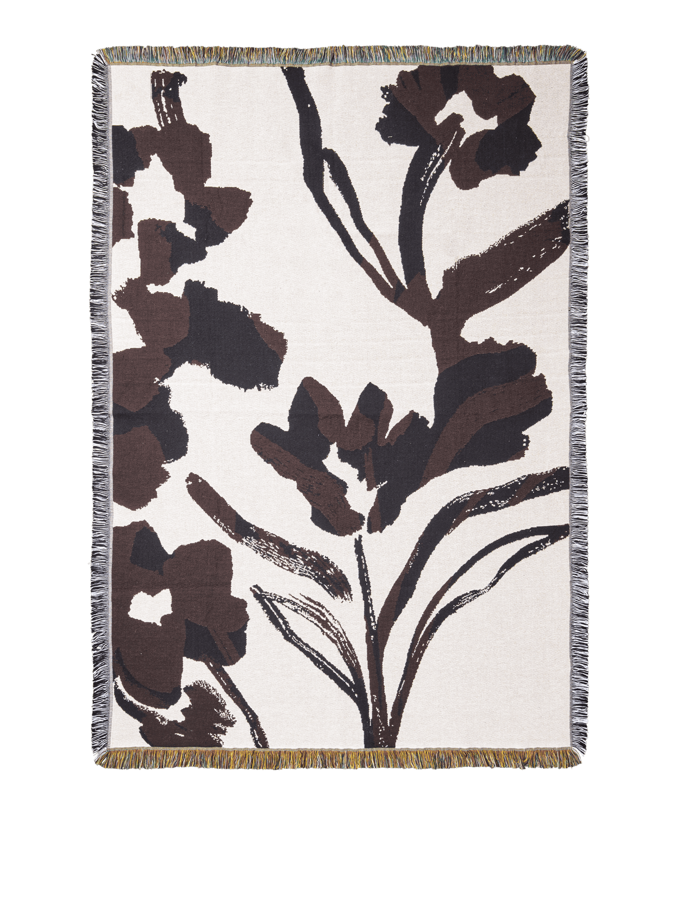 The Cilla Tapestry Blanket features a hand-painted floral motif that captures the fluidity and softness of botanical forms. Woven from GOTS-certified organic cotton using traditional tapestry techniques, it blends intricate detail with tactile depth. Finished with decorative fringing, the blanket is both functional and expressive. Drape it over a sofa or hang it on the wall as a woven artwork.