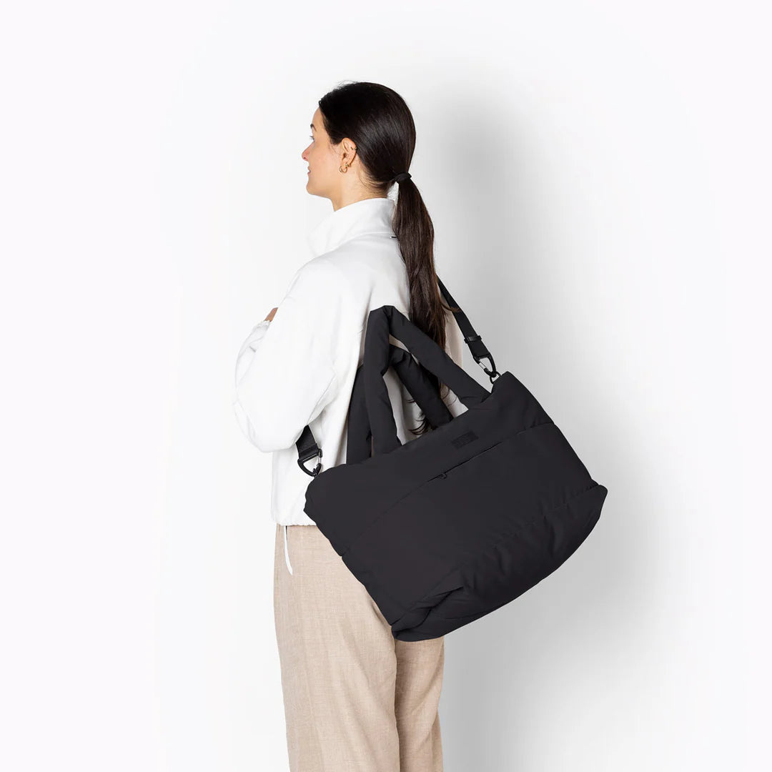 This bag will take you to cloud nine. Olivia Bag combines minimalist design with a modern, puffy look. On the outside, a zip pocket on the front provides secure storage space, while the pocket on the back can be converted into a trolley holder - ideal for traveling. Carry it casually in your hand or comfortably over one shoulder. An additional strap can be optionally attached to carry the bag diagonally if you want to load more. Designed with function in mind, the Olivia bag features two zip pockets and two open compartments - roomy enough to carry your laptop securely, alongside your water bottle and more.