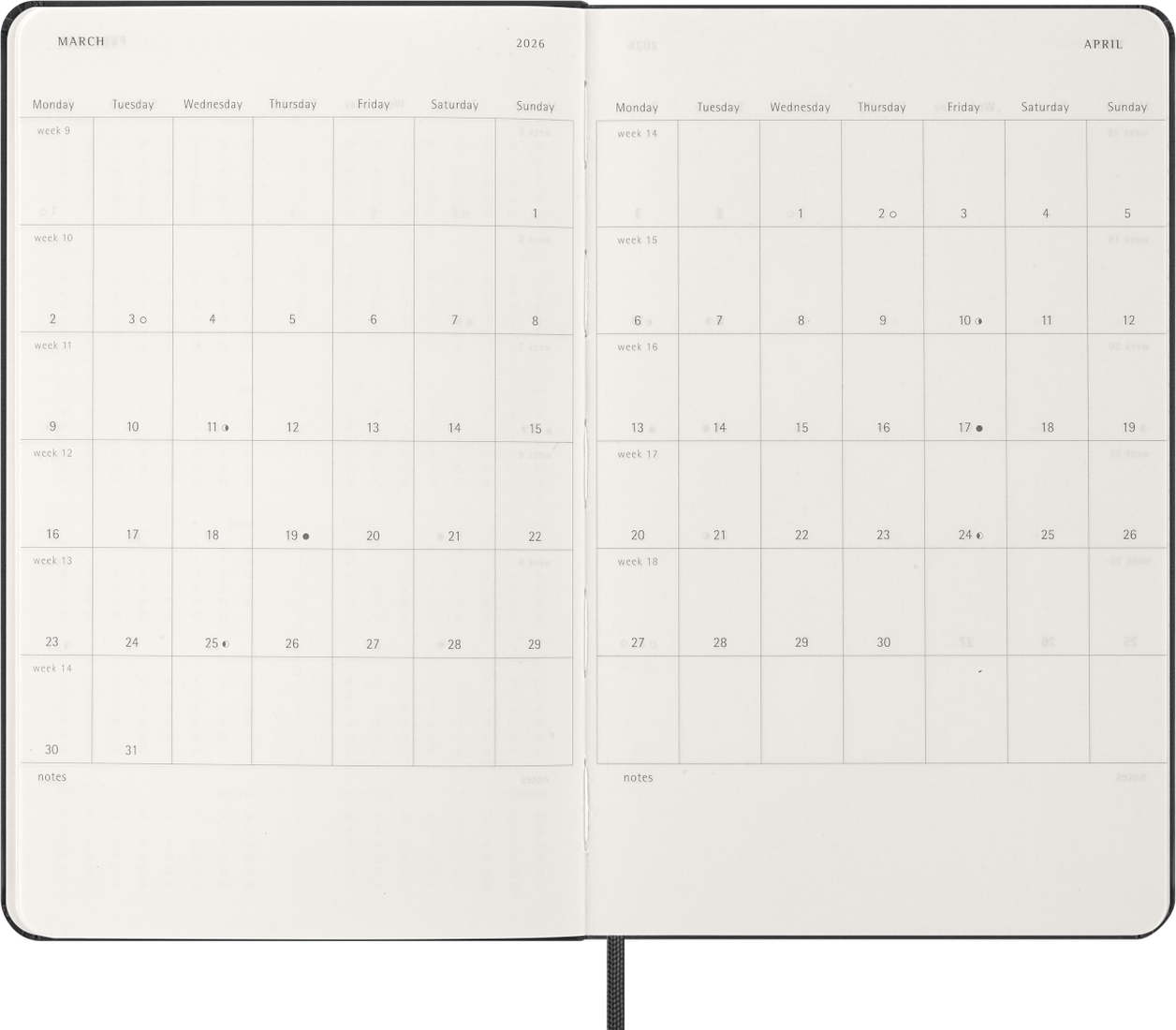 Moleskine 2026 Diary/Notebook - Black - Spread 01