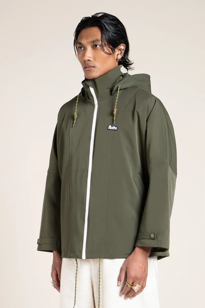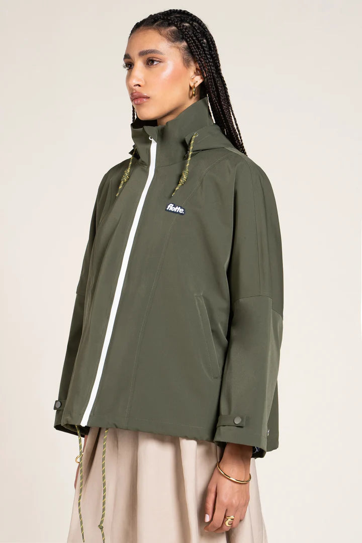 Discover Lourmel in Khaki, the jacket inspired by outdoor style, designed for dynamic silhouettes. Made from a lightweight, waterproof technical fabric, it protects against rain and wind without compromising on style. Its bellows pockets and structured cut give it a modern, utilitarian look.