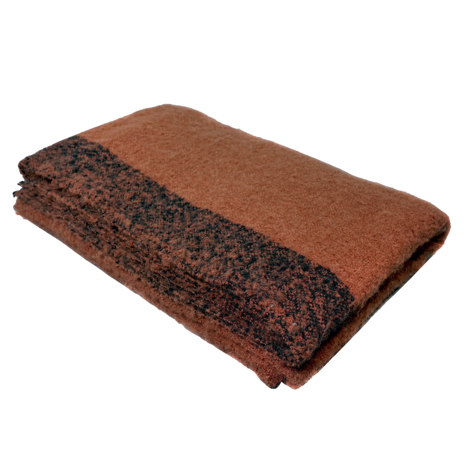 The wool texture of Aspen throw will allow you to spend the winter peacefully with its softness and warmth. It is perfect for a sofa or a bed with its wide black wool band at the end of the blanket.