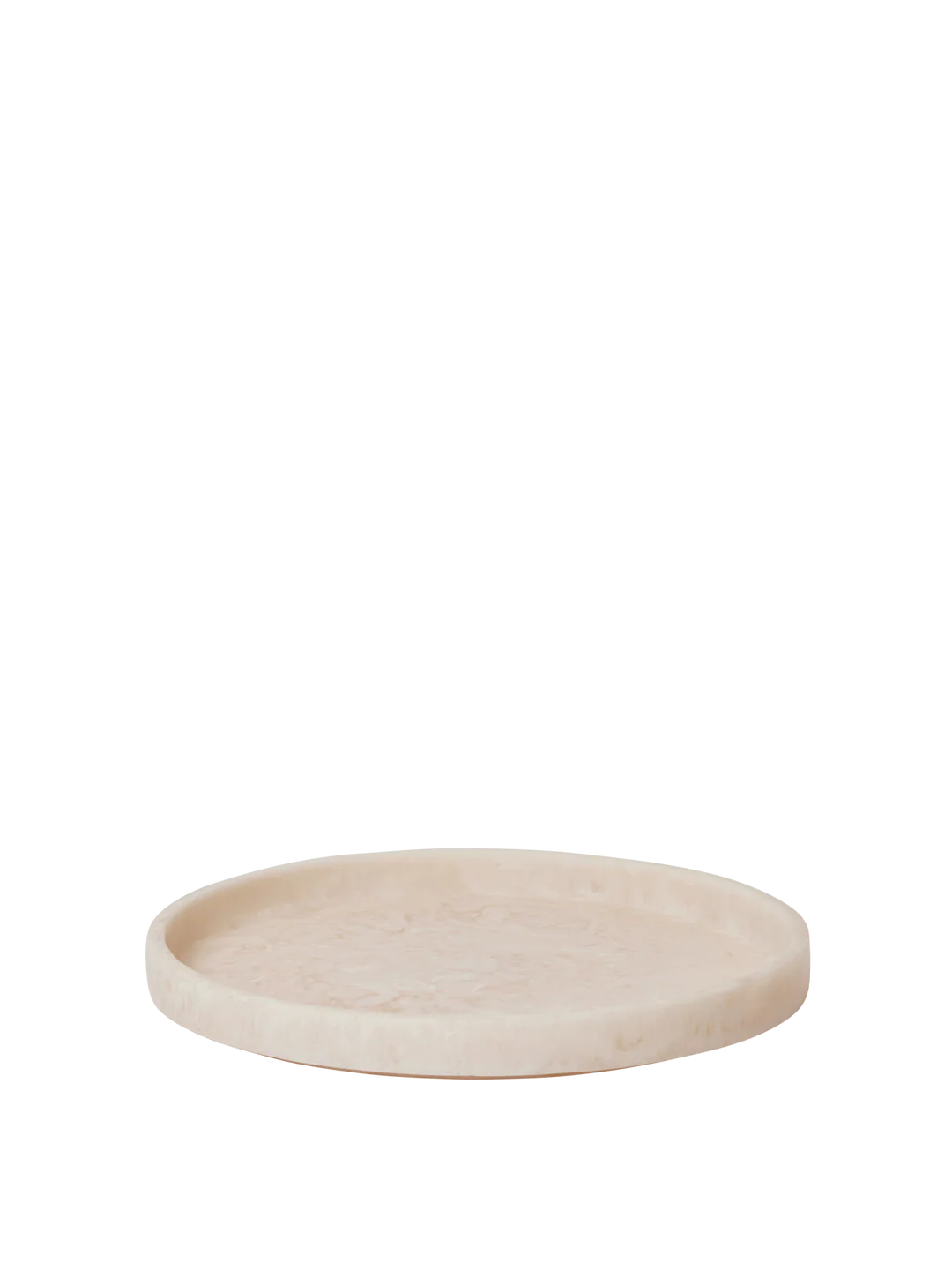The Mist Tray is presented in a round format, offering a softer take on its sculptural expression. Crafted from a resin blend with swirling, translucent tones, each tray is unique in its expression. The Mist Series is ideal for displaying self-care items, jewellery or everyday treasures, adding a subtle sculptural touch to any room.