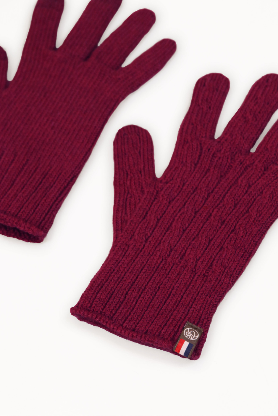 Maison Bonnefoy - Touchscreen Gloves - Merino Wool - Daniel - Burgundy Carmin - Close Look