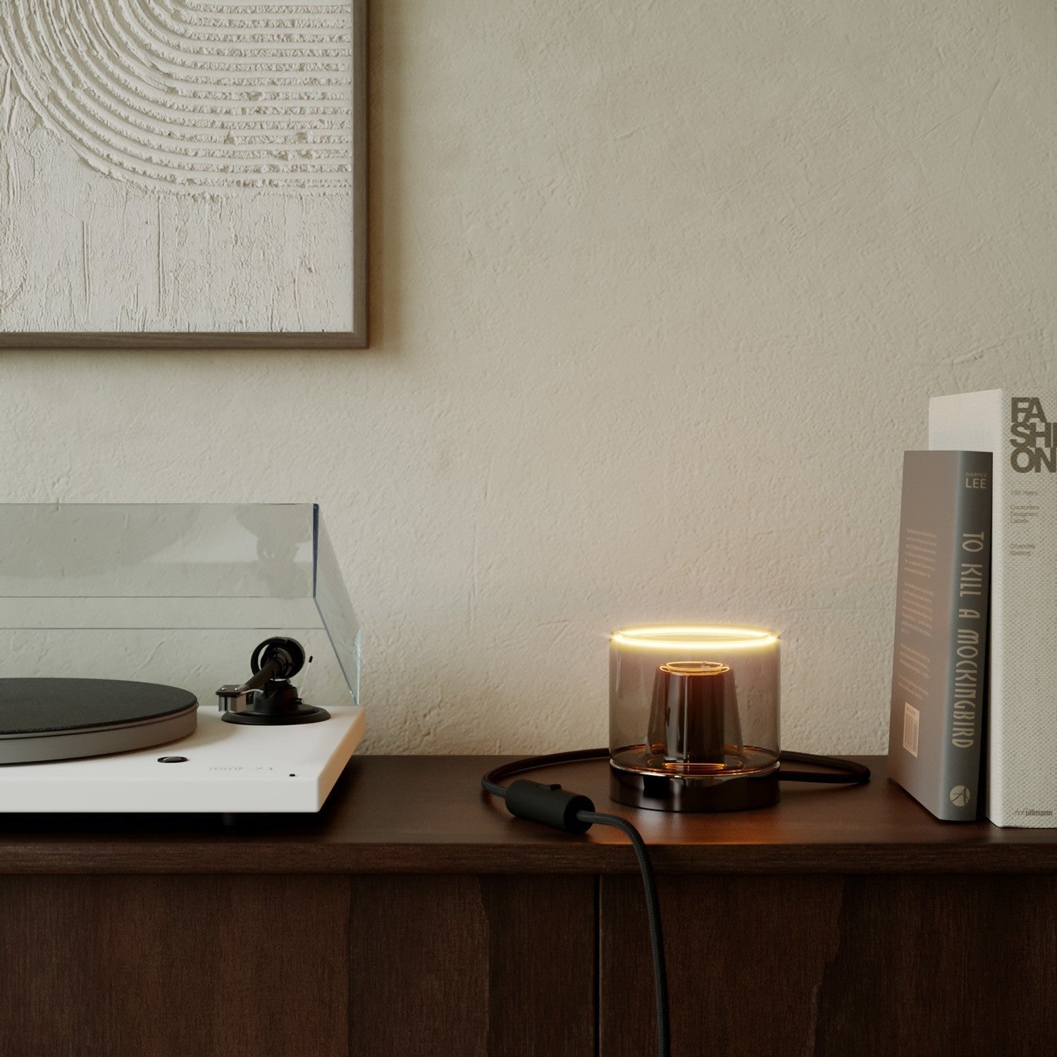Ideal for the bedside table, but also for illuminating your desk or decorating your living room coffee table, this table lamp is more than just a light source. It is made of metal, includes a fabric-covered cable, and has an ON/OFF switch.