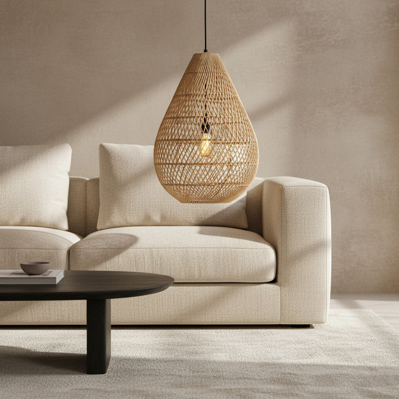 Put any room in the spotlight with this beautiful and timeless drop shaped Maze lamp. Not only a great hanging lamp by day, but especially by night when switched on. Thanks to the weaving, the lamp has beautiful light and shadow effects, which provide exciting and playful effects in any room. Also nice in combination with the other Maze sizes and shapes.