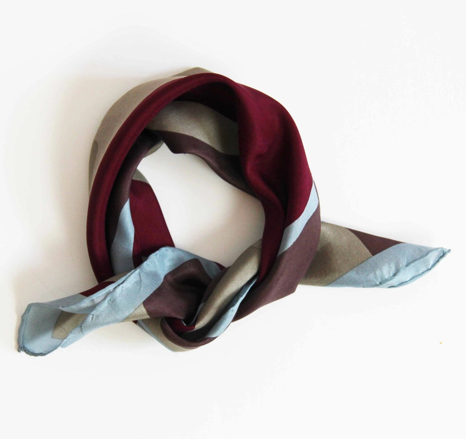 Les Belles Vagabondes's mini scarves make an original gift, they can be worn around the neck, around the wrist, as a headband, in a bun or even around the bag... They are drawn by hand in France and printed by hand in India. They have an exceptional finish with a hand-rolled hem. They are sold in a box inspired by vintage matchboxes.