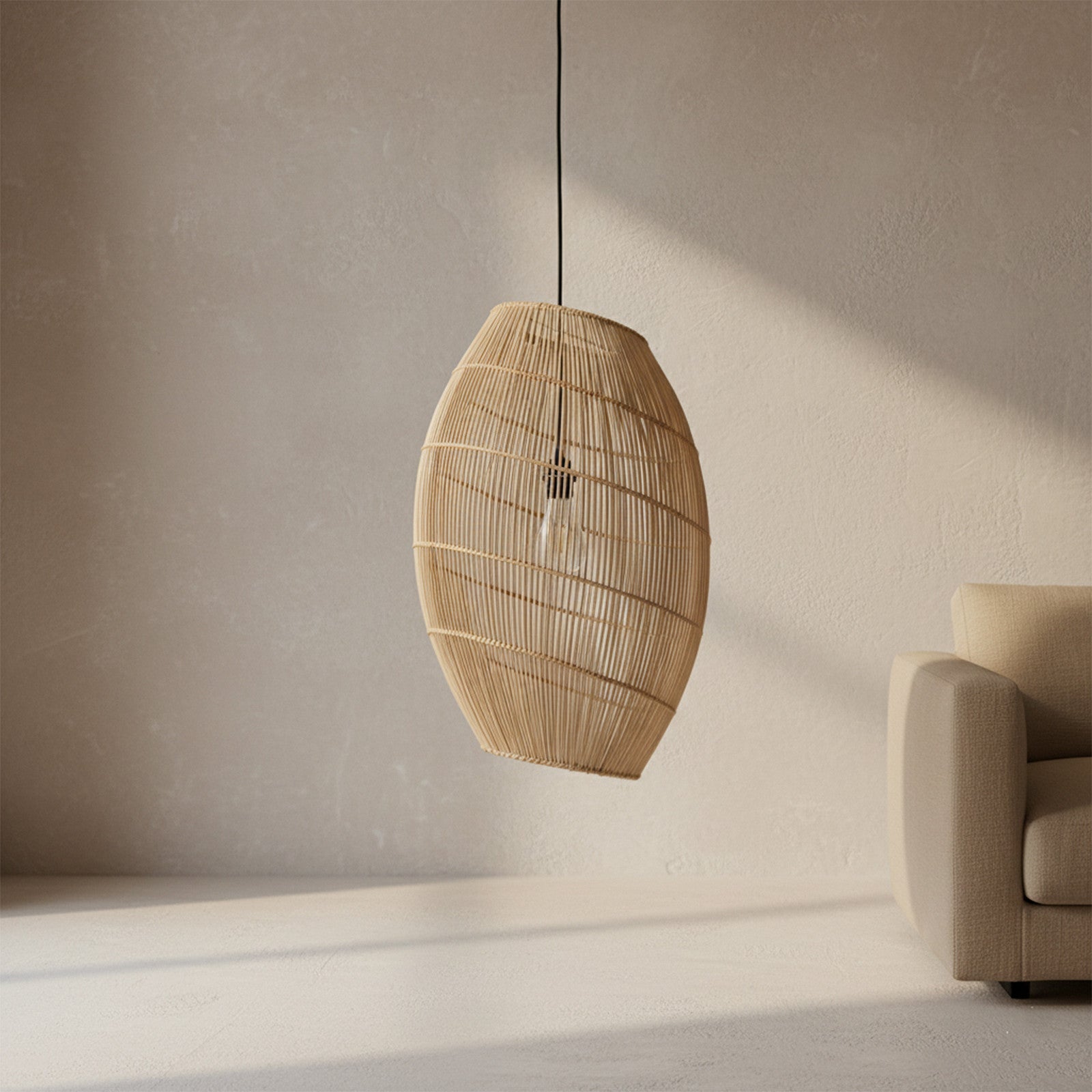 Luna Lamp Shade with Pendant - Halo - Handmade Rattan - Natural ambiance